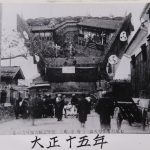 撮影場所は鳥居が見えるので山王町の山王神社前と思われます。 写真は鍜冶町のでか山です。 着物を着た人が多くいるので戦前の写真と思われます。 撮影時期は現在調査中です。随時情報を更新…