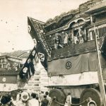 撮影場所は鳥居が見えるので山王町の山王神社前と思われます。 写真は鍜冶町のでか山です。 着物を着た人が多くいるので戦前の写真と思われます。 撮影時期は現在調査中です。随時情報を更新…