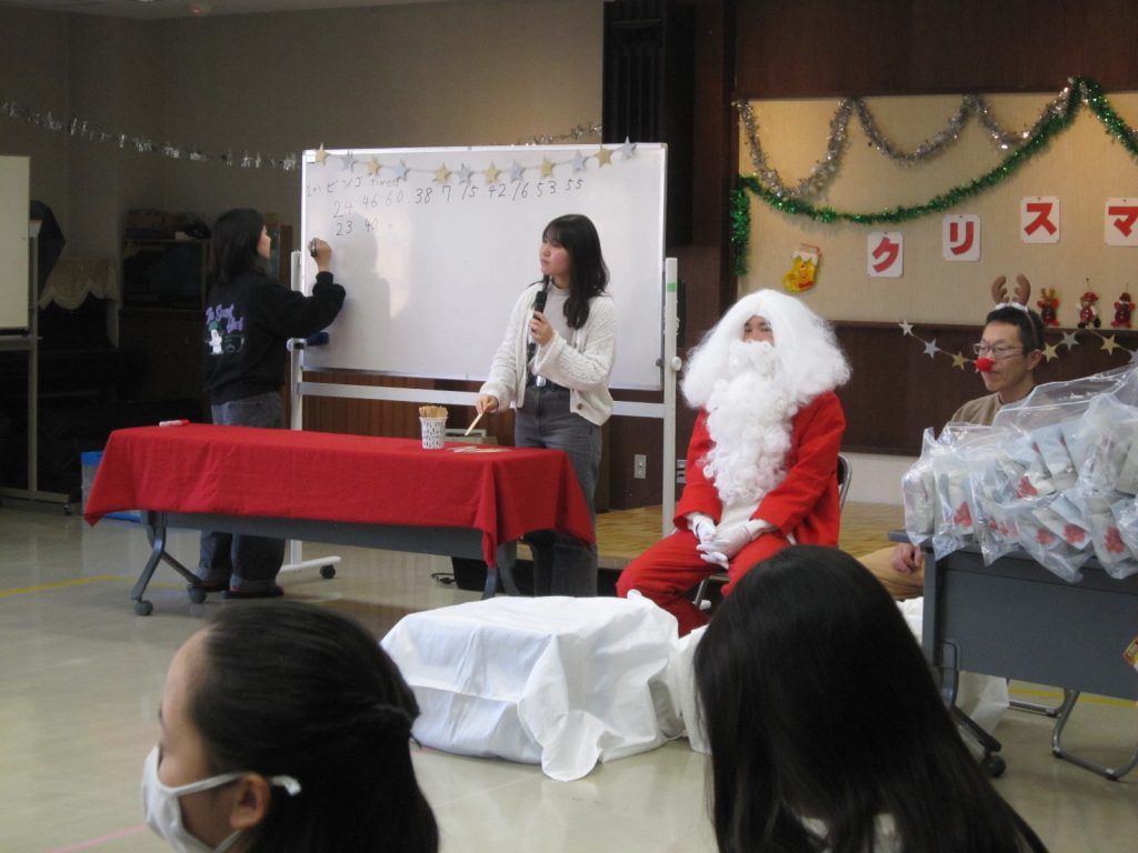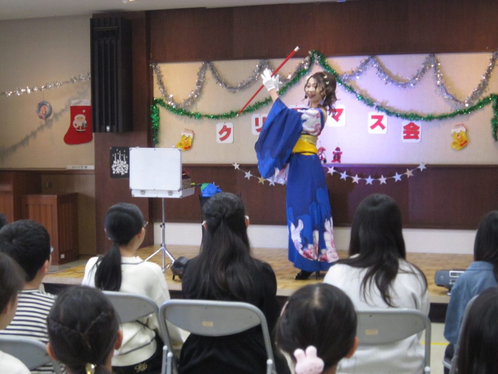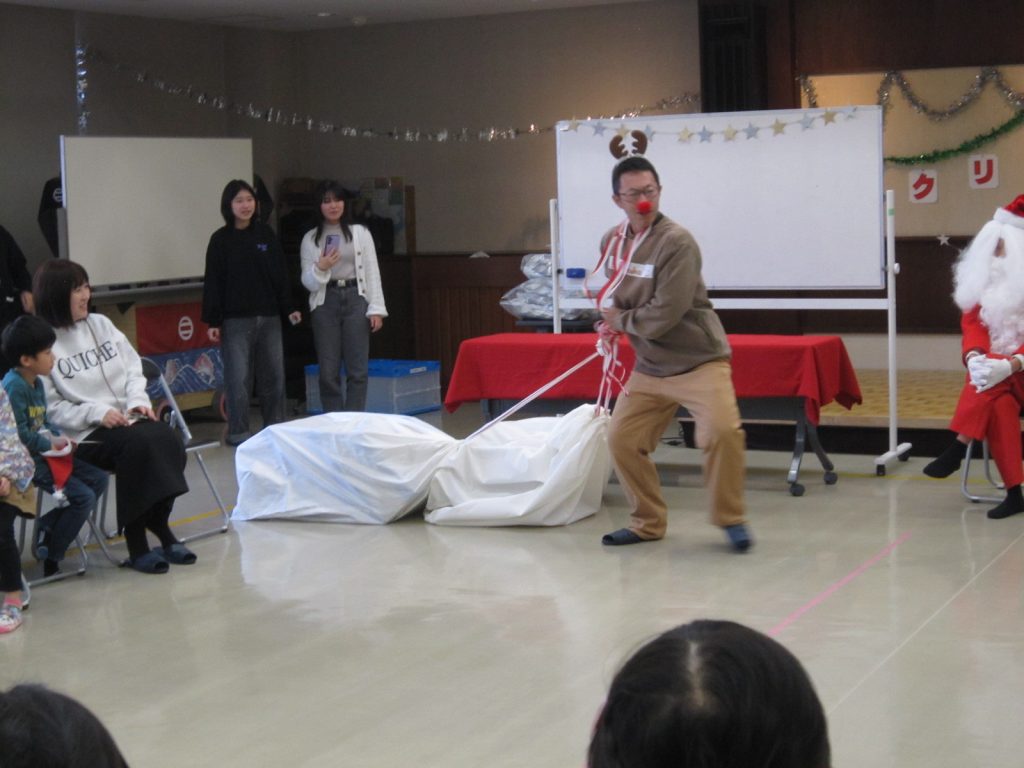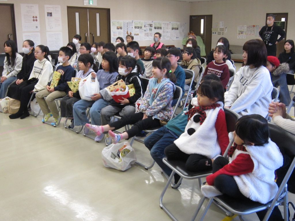 12月20日(土)にクリスマス会を行いました。子ども館OB高校生のお手伝いと、子どもたちにおなじみの「P爺」こと大石さん(災害復旧サポート:埼玉県在住)も来て下さり、たくさんのプレゼントで開催できました。プロのマジシャンRENAさんによるマジックショーにも驚きの連続でした。