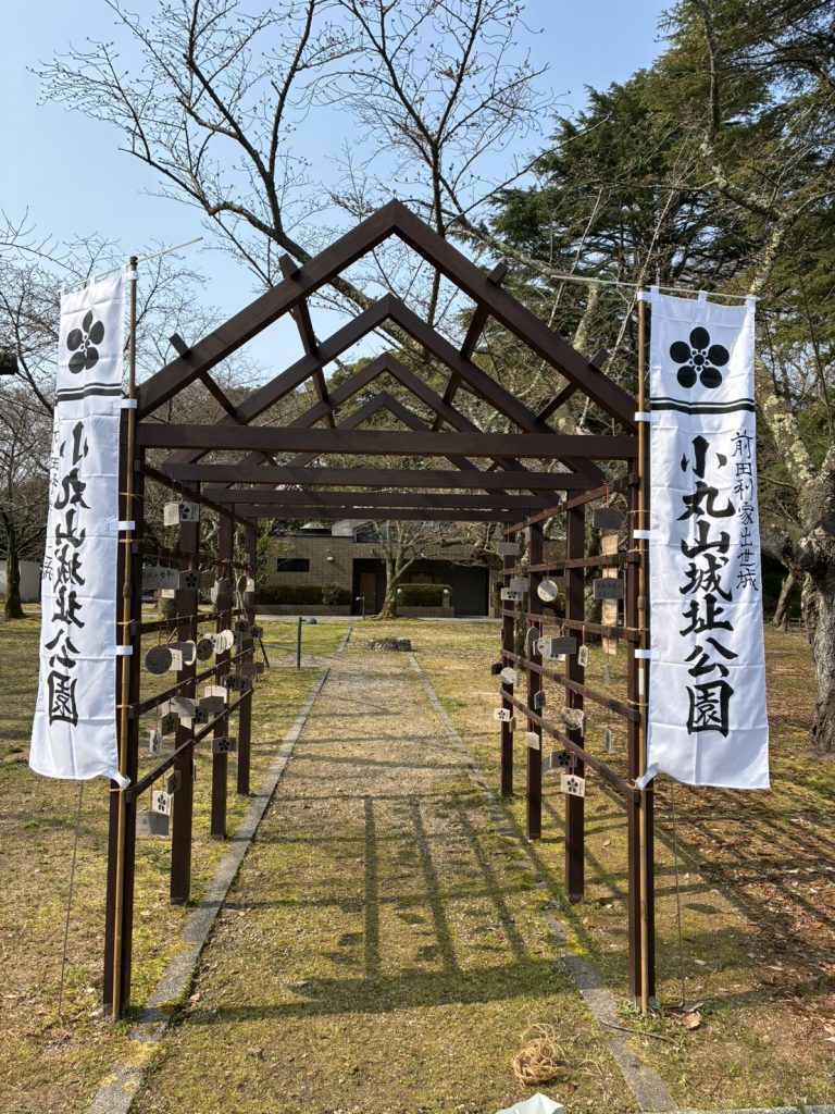 前田利家公の出世城として知られる「小丸山城址公園」に、願いを託す絵馬掛け処が設置されています。